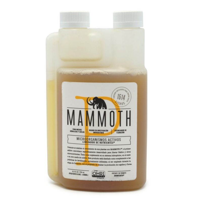 MAMMOTH P 500 ML GROWCENTIA es el primer inoculante microbiano orgánicamente derivado para el cultivo de la marihuana que maximiza fósforo y micronutrientes para maximizar el crecimiento del brote, aumentar el rendimiento, y mejorar la salud de la planta.