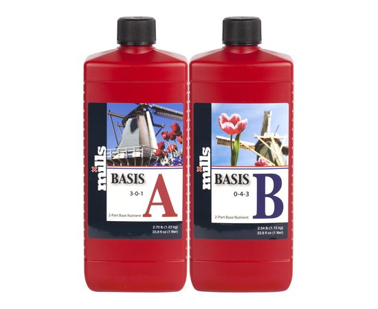 Basis A+B by Mills. Las Bases A y B de Mills son la base de los nutrientes que necesitan las plantas, todos los micro y macronutrientes esenciales se encuentran en estas dos botellas.